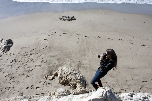 Today everyone in the office thought that it might be fun to jump on the Throwback Thursday bandwagon and bring you some behind-the-scenes shots from last year’s Noosa shoot. The pictures were taken last January which is why there were no other people there. Despite the fact that it looks like a gorgeous sunny day at the beach, it was actually quite cold. Well, cold by LA standards anyway. It was probably in the mid 60s, which would be extremely warm in most parts of the country, but in our neck of the woods that’s practically frigid. Hope you enjoy the pictures!