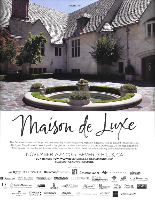 Marcali Designs is proud to be a sponsor of Luxe Magazine's 2015 Maison de Luxe designer show house located in the historic Greystone Mansion in Beverly Hills. The show house will be open to the public from Novembr 7-22, 2015.