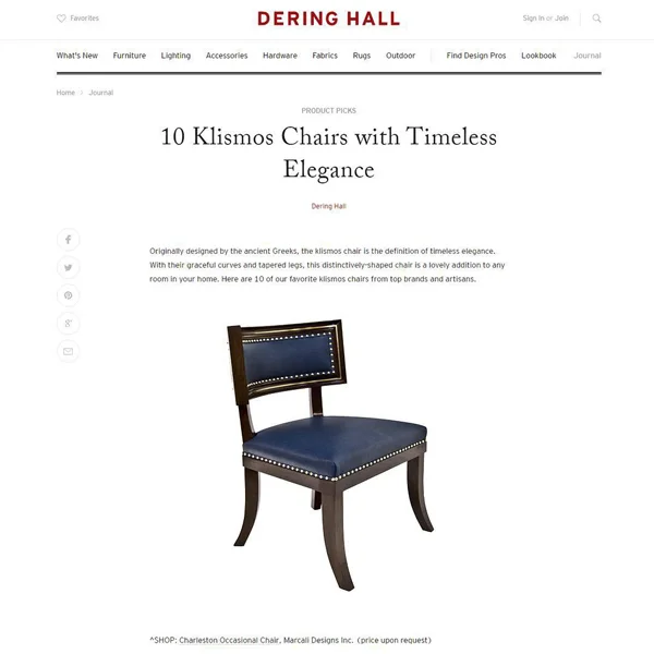 Our Charleston Occasional Chair was featured in today's Dernig Hall Feature - 10 Klismos Chairs with Timeless Elegance. Be sure to head over to Dering Hall and check it out!